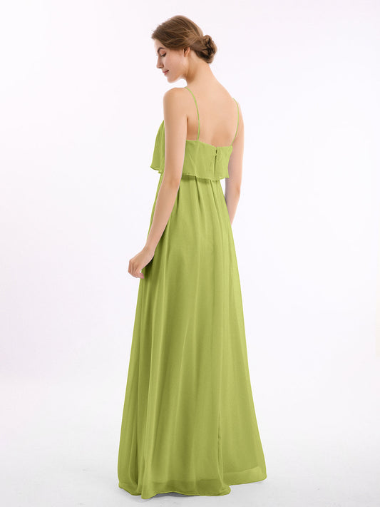 Babaroni SetllaVestido de chiffon con tirantes finos y falda tipo cascada Verde Lima Tallas Grandes