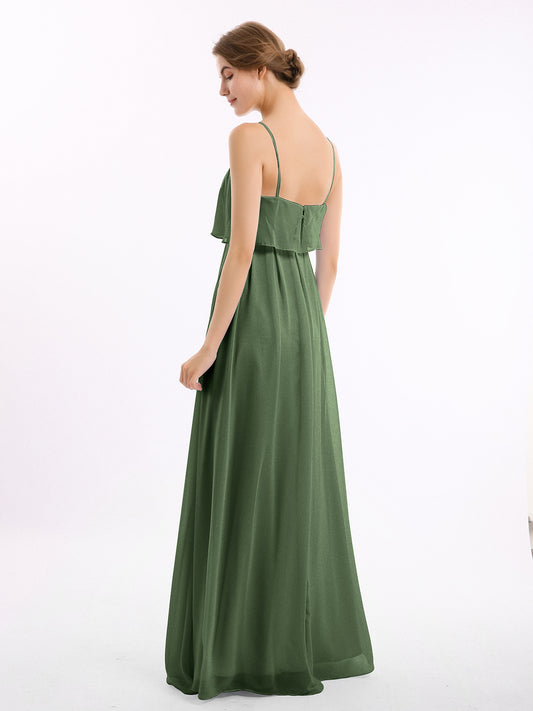Babaroni SetllaVestido de chiffon con tirantes finos y falda tipo cascada Verde Oliva Tallas Grandes
