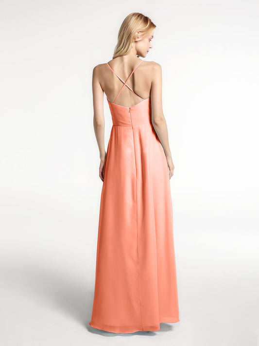 Babaroni MonaVestido de chiffon con tirantes finos y volantes de alto y bajo Atardecer