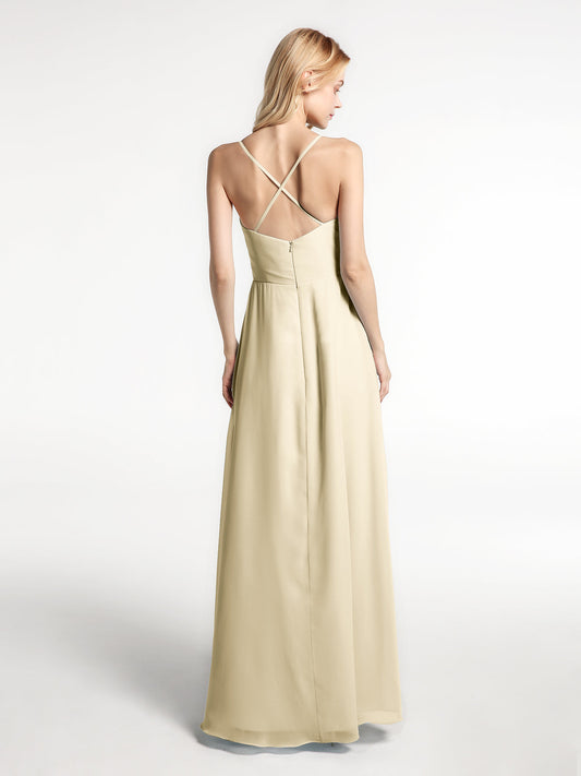 Babaroni MonaVestido de chiffon con tirantes finos y volantes de alto y bajo Champán