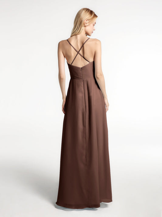 Babaroni MonaVestido de chiffon con tirantes finos y volantes de alto y bajo Chocolate Tallas Grandes
