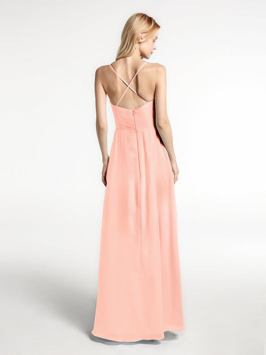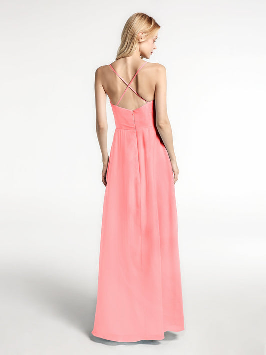 Babaroni MonaVestido de chiffon con tirantes finos y volantes de alto y bajo Coral