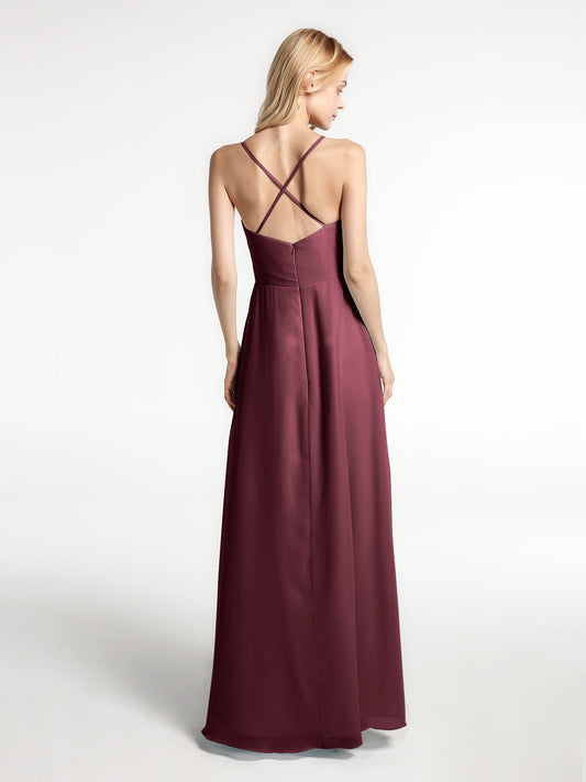 Babaroni MonaVestido de chiffon con tirantes finos y volantes de alto y bajo Borgoña