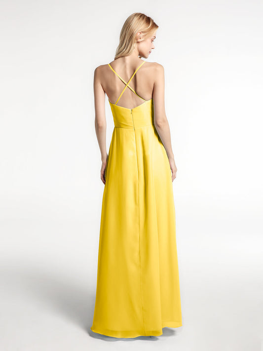 Babaroni MonaVestido de chiffon con tirantes finos y volantes de alto y bajo Caléndula Tallas Grandes