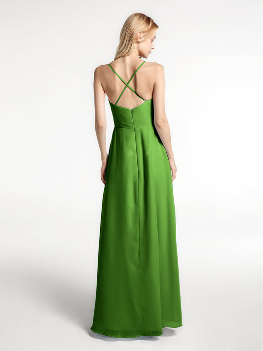 Babaroni MonaVestido de chiffon con tirantes finos y volantes de alto y bajo Musgo
