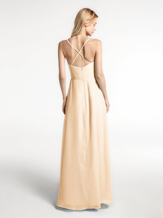 Babaroni MonaVestido de chiffon con tirantes finos y volantes de alto y bajo Marfil Tallas Grandes