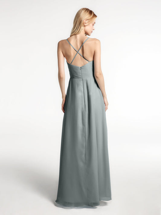 Babaroni MonaVestido de chiffon con tirantes finos y volantes de alto y bajo Gris Acero Tallas Grandes