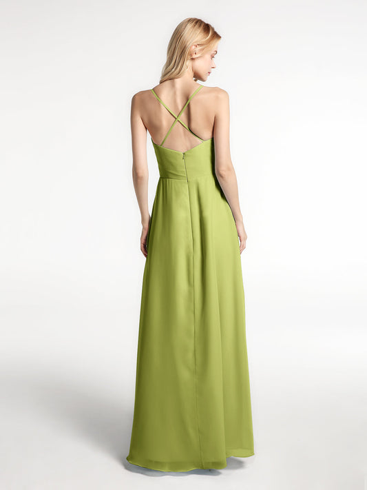 Babaroni MonaVestido de chiffon con tirantes finos y volantes de alto y bajo Verde Lima Tallas Grandes