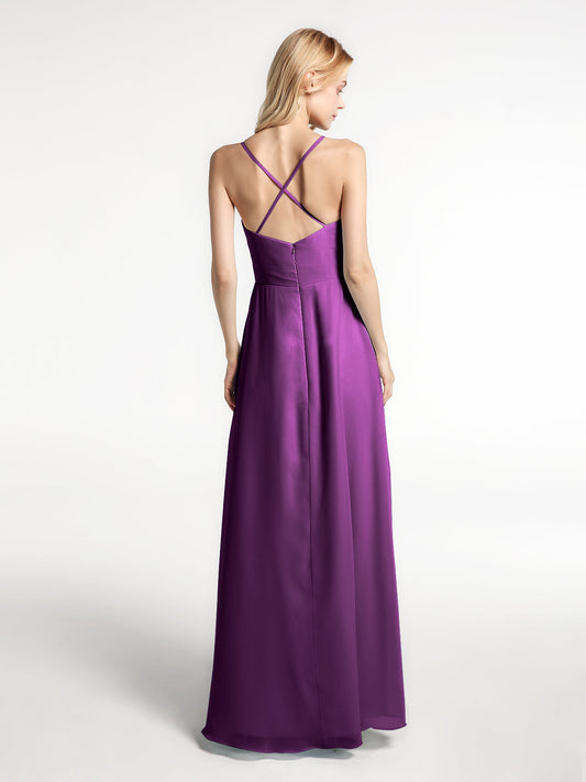 Babaroni MonaVestido de chiffon con tirantes finos y volantes de alto y bajo Uva Tallas Grandes