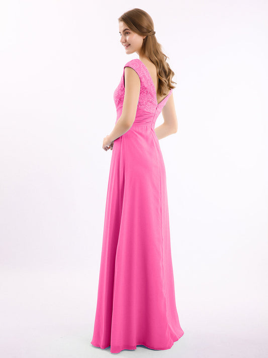 Babaroni ClaudiaVestido de chiffon y encaje con mangas cap y escote en V Azalea Tallas Grandes