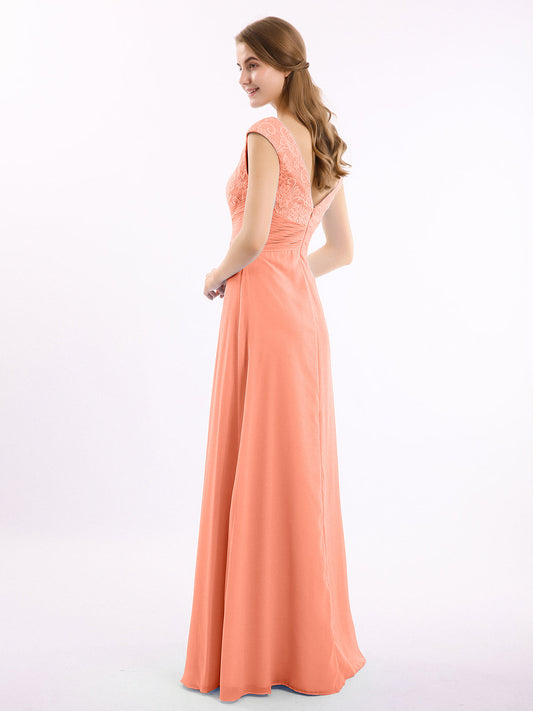 Babaroni ClaudiaVestido de chiffon y encaje con mangas cap y escote en V Atardecer Tallas Grandes