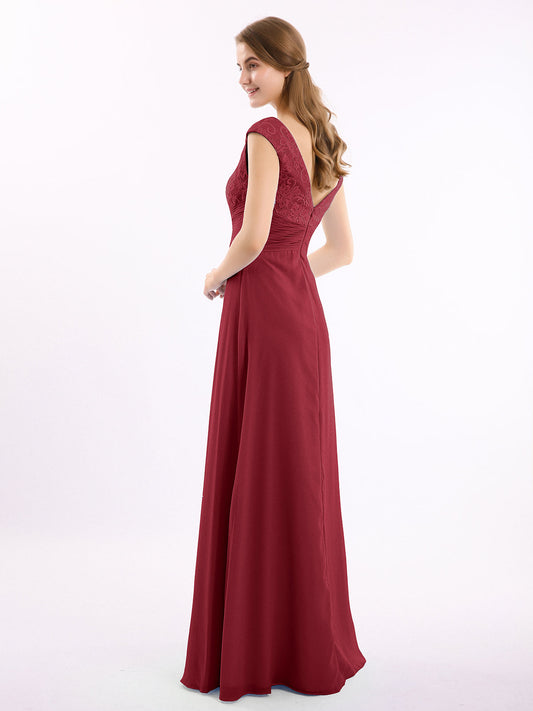 Babaroni ClaudiaVestido de chiffon y encaje con mangas cap y escote en V Borgoña