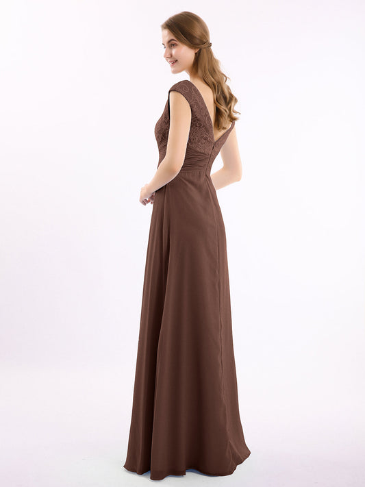 Babaroni ClaudiaVestido de chiffon y encaje con mangas cap y escote en V Chocolate Tallas Grandes
