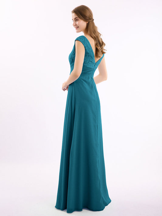 Babaroni ClaudiaVestido de chiffon y encaje con mangas cap y escote en V Azul Polvoriento Tallas Grandes
