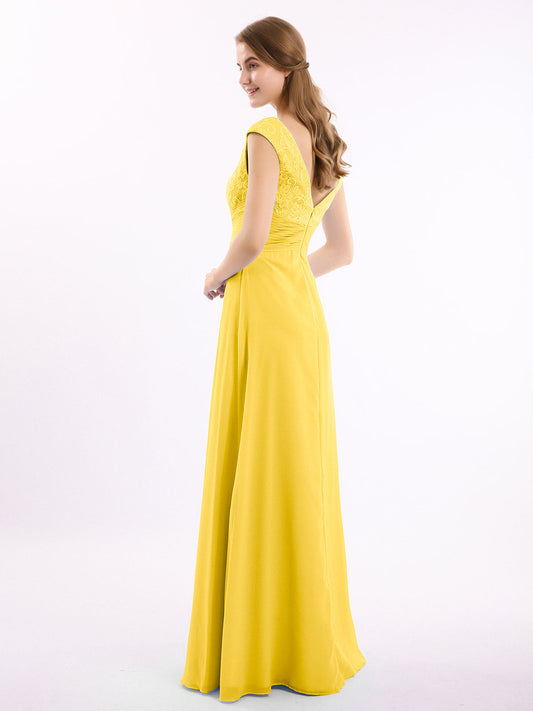 Babaroni ClaudiaVestido de chiffon y encaje con mangas cap y escote en V Caléndula Tallas Grandes