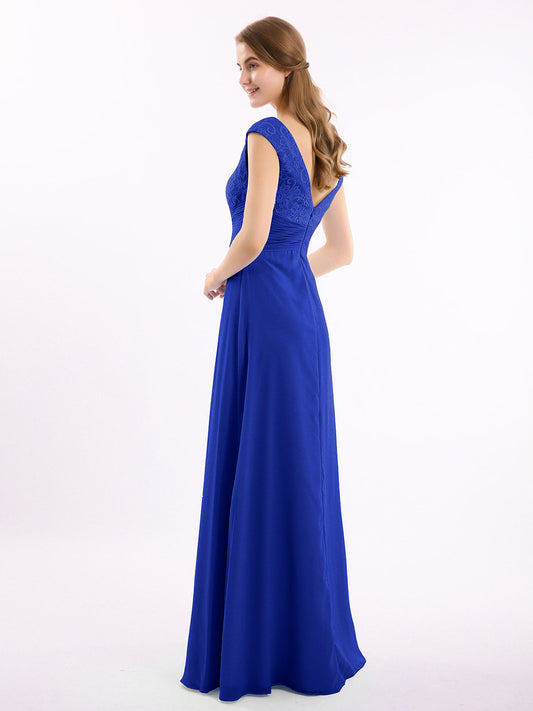 Babaroni ClaudiaVestido de chiffon y encaje con mangas cap y escote en V Azul Royal Tallas Grandes