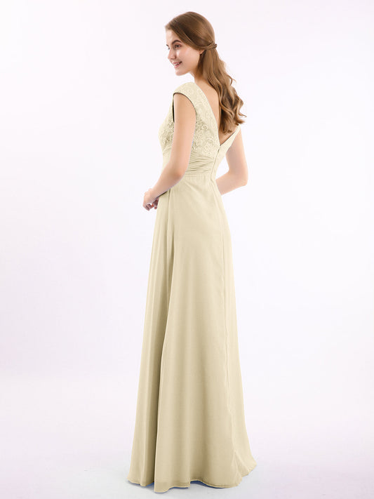 Babaroni ClaudiaVestido de chiffon y encaje con mangas cap y escote en V Champán Tallas Grandes