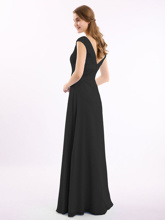 Babaroni ClaudiaVestido de chiffon y encaje con mangas cap y escote en V Negro Tallas Grandes