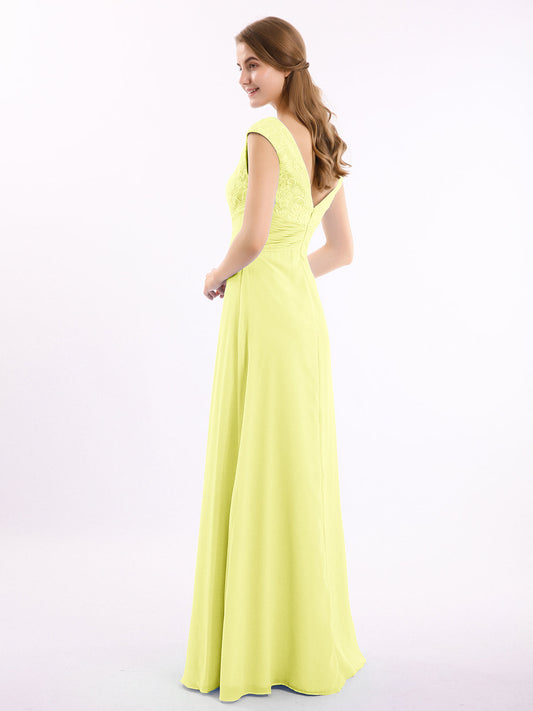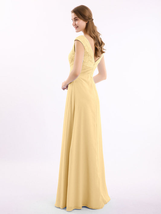 Babaroni ClaudiaVestido de chiffon y encaje con mangas cap y escote en V Oro Tallas Grandes