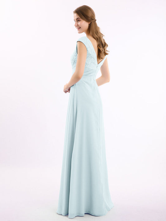 Babaroni ClaudiaVestido de chiffon y encaje con mangas cap y escote en V Niebla Tallas Grandes
