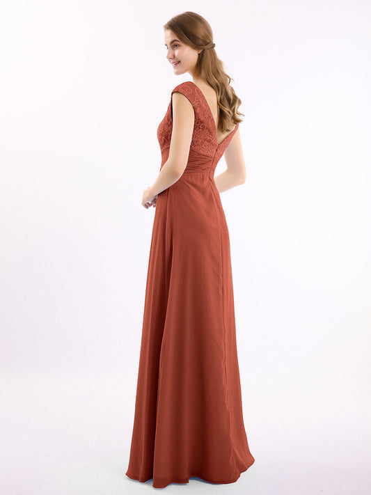 Babaroni ClaudiaVestido de chiffon y encaje con mangas cap y escote en V Óxido Tallas Grandes