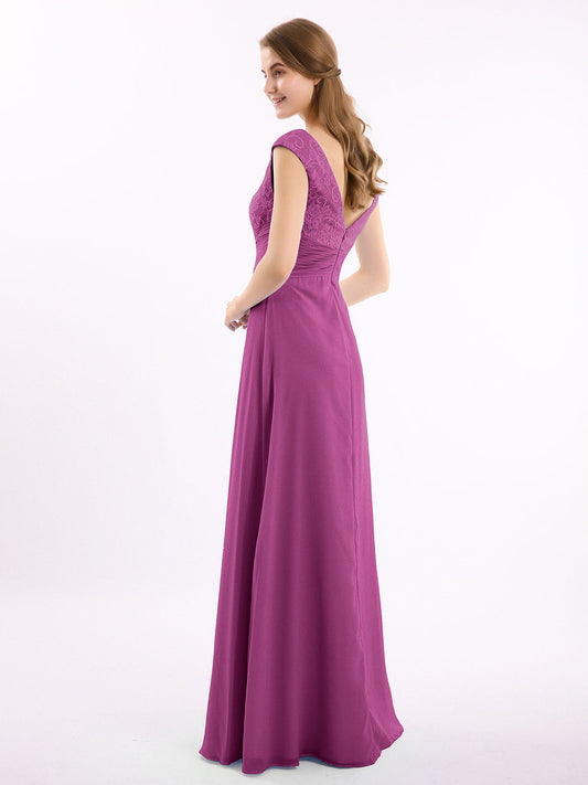 Babaroni ClaudiaVestido de chiffon y encaje con mangas cap y escote en V Orquídea Tallas Grandes