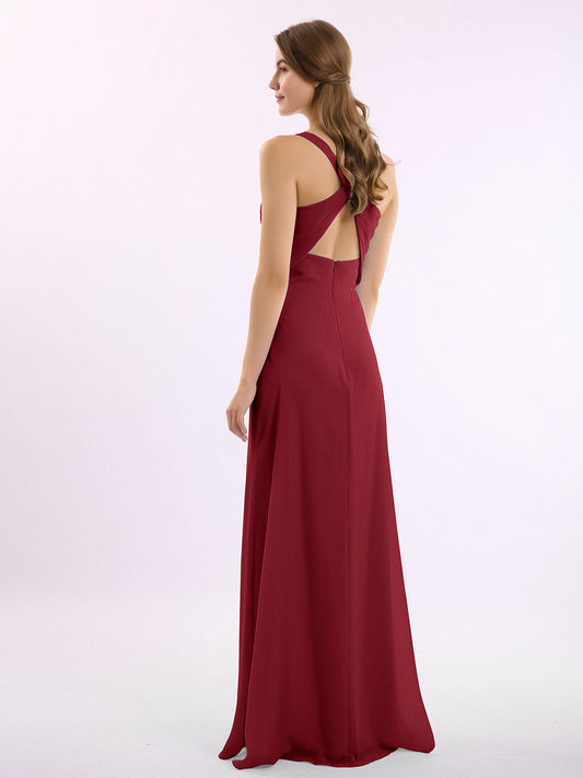 Babaroni VitaVestido de dama de honor de chiffon con escote en V y espalda descubierta Cabernet