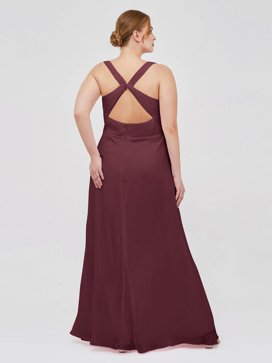 Babaroni VitaVestido de dama de honor de chiffon con escote en V y espalda descubierta Cabernet Tallas Grandes