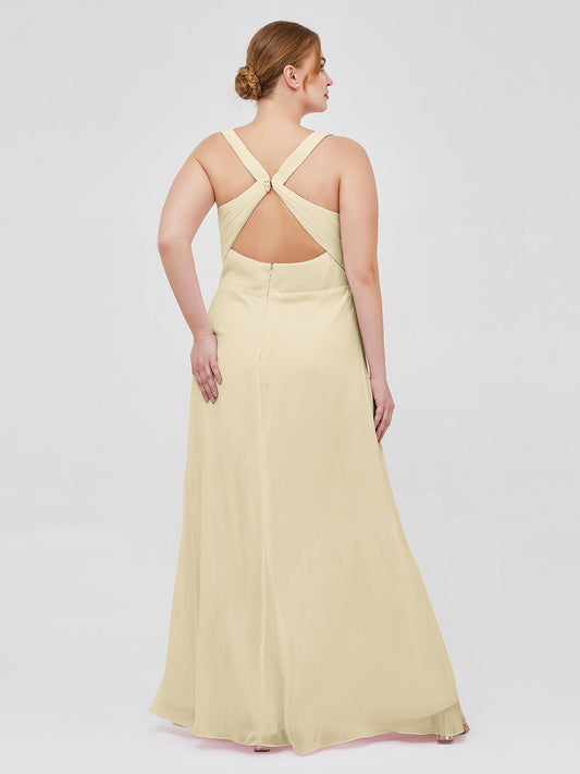 Babaroni VitaVestido de dama de honor de chiffon con escote en V y espalda descubierta Champán Tallas Grandes