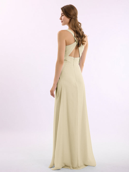 Babaroni VitaVestido de dama de honor de chiffon con escote en V y espalda descubierta Champán
