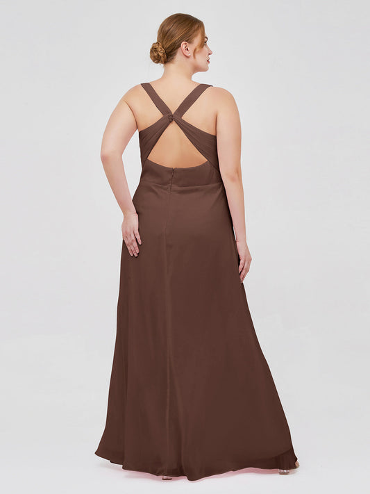 Babaroni VitaVestido de dama de honor de chiffon con escote en V y espalda descubierta Chocolate Tallas Grandes