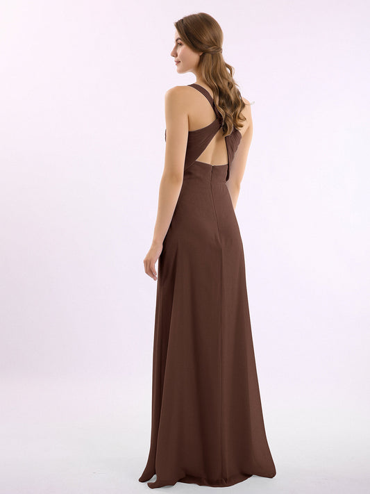 Babaroni VitaVestido de dama de honor de chiffon con escote en V y espalda descubierta Chocolate