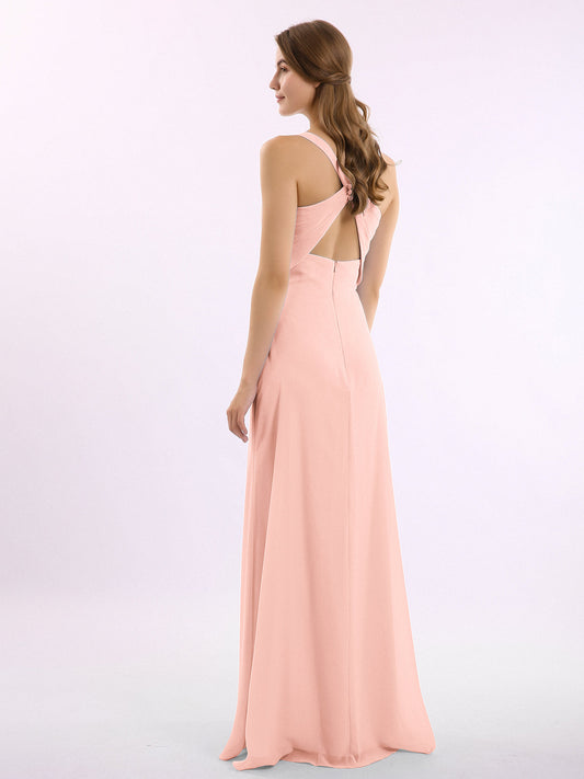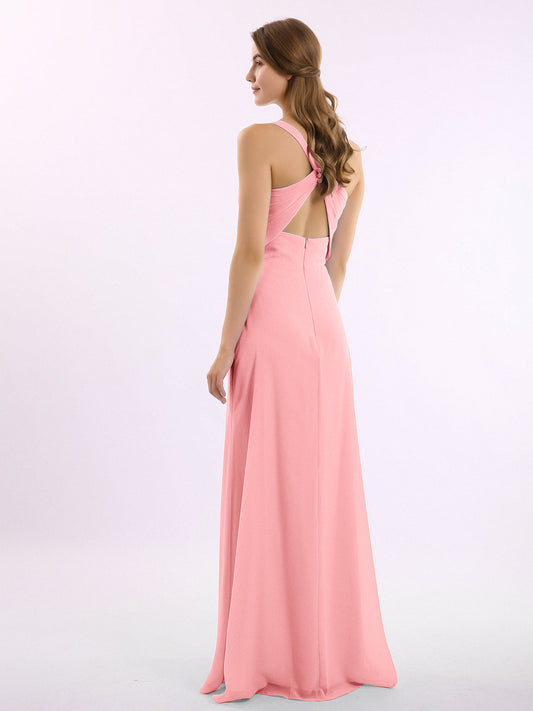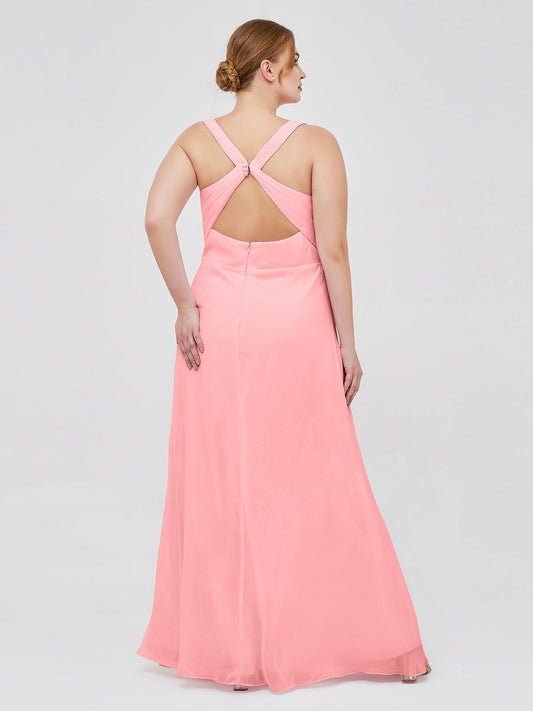 Babaroni VitaVestido de dama de honor de chiffon con escote en V y espalda descubierta Coral Tallas Grandes