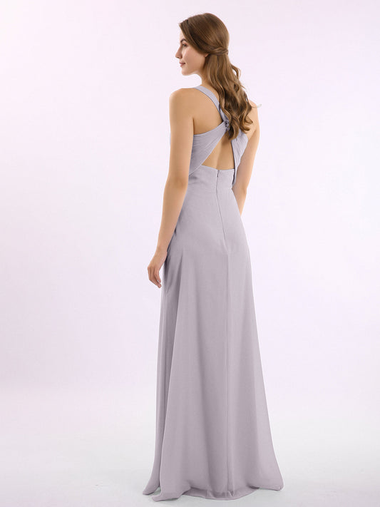 Babaroni VitaVestido de dama de honor de chiffon con escote en V y espalda descubierta Crepúsculo