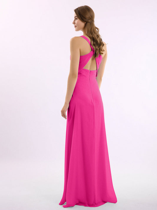 Babaroni VitaVestido de dama de honor de chiffon con escote en V y espalda descubierta Fucsia