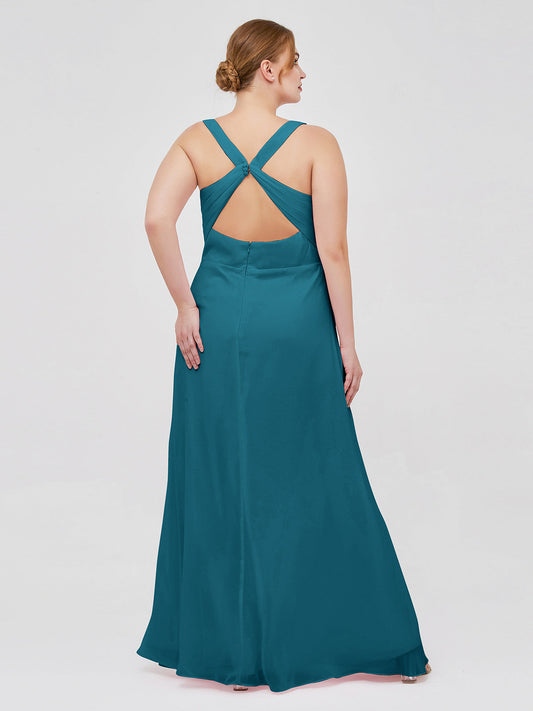 Babaroni VitaVestido de dama de honor de chiffon con escote en V y espalda descubierta Esmeralda Tallas Grandes