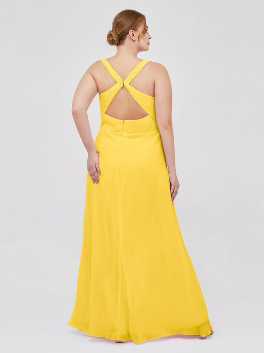 Babaroni VitaVestido de dama de honor de chiffon con escote en V y espalda descubierta Caléndula Tallas Grandes