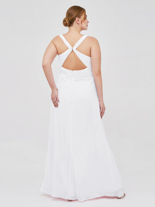 Babaroni VitaVestido de dama de honor de chiffon con escote en V y espalda descubierta Blanco Tallas Grandes