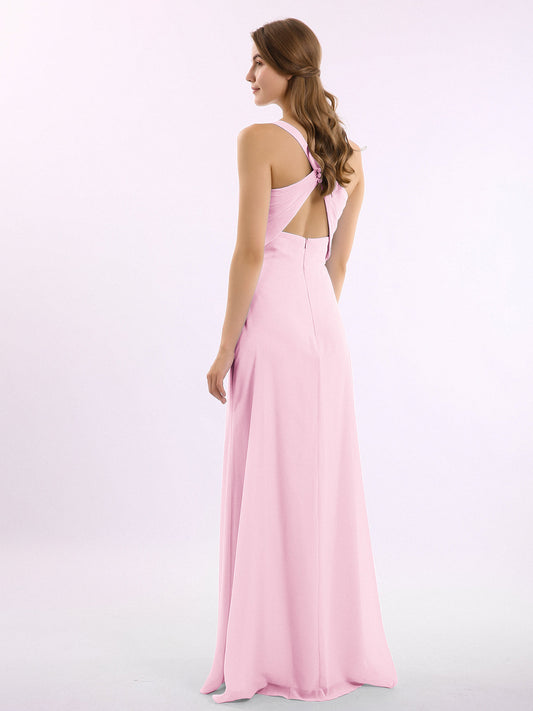 Babaroni VitaVestido de dama de honor de chiffon con escote en V y espalda descubierta Rosa Claro