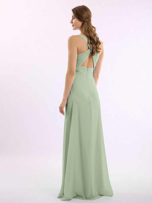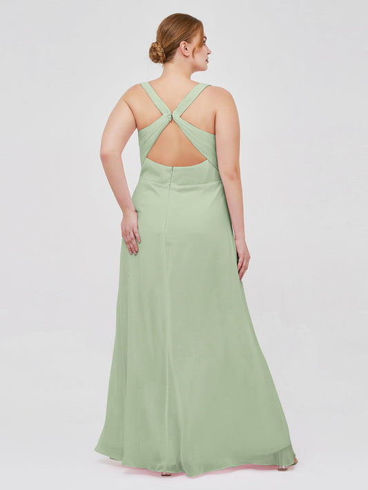 Babaroni VitaVestido de dama de honor de chiffon con escote en V y espalda descubierta Salvia Tallas Grandes