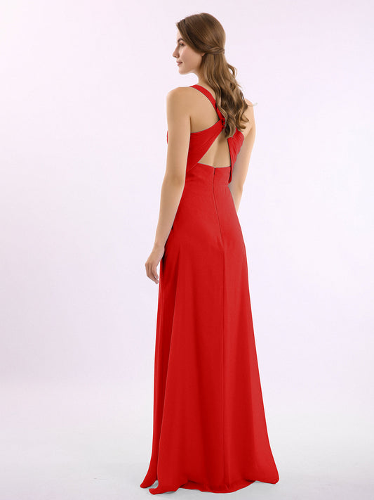 Babaroni VitaVestido de dama de honor de chiffon con escote en V y espalda descubierta Rojo Tallas Grandes