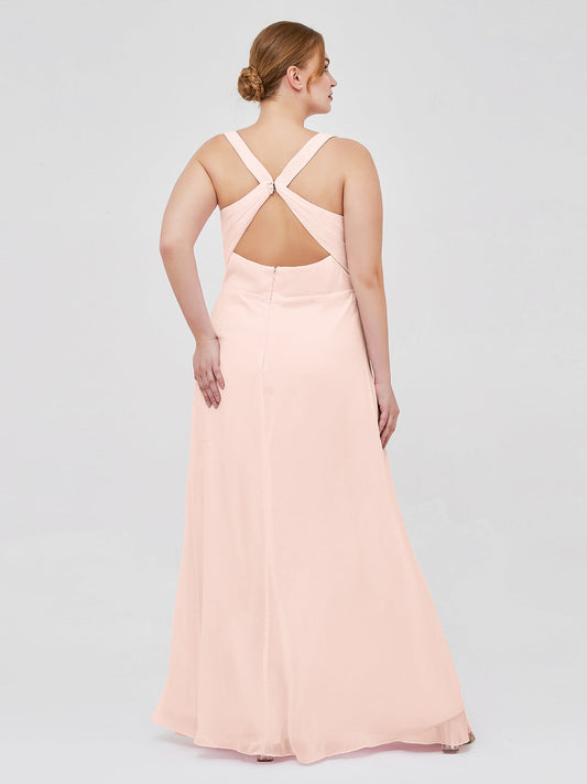 Babaroni VitaVestido de dama de honor de chiffon con escote en V y espalda descubierta Rosa Claro Tallas Grandes