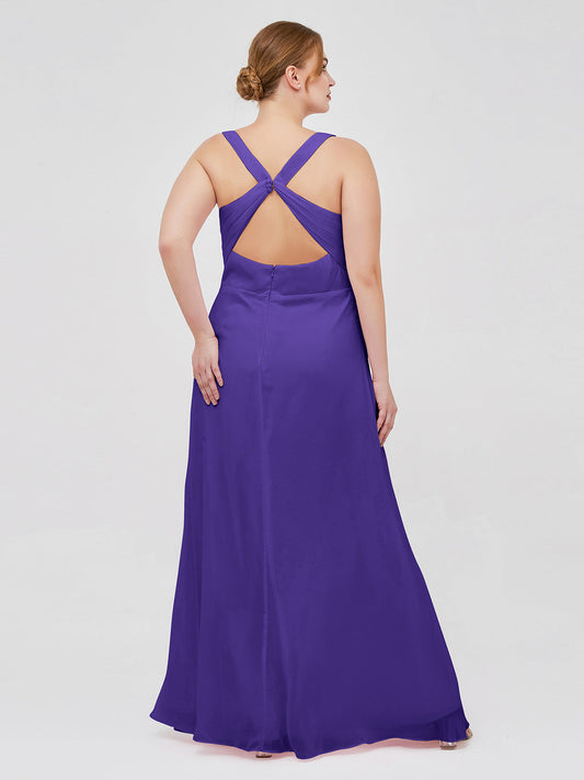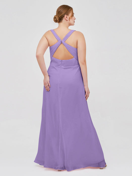 Babaroni VitaVestido de dama de honor de chiffon con escote en V y espalda descubierta Regencia Tallas Grandes