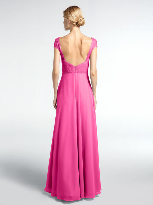 Babaroni RosalindVestido de encaje en el cuerpo y falda de chiffon con mangas cortas Azalea