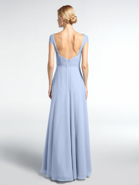 Babaroni RosalindVestido de encaje en el cuerpo y falda de chiffon con mangas cortas Azul Cielo