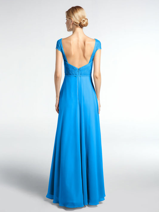 Babaroni RosalindVestido de encaje en el cuerpo y falda de chiffon con mangas cortas Azul Océano