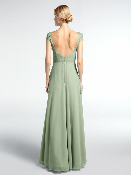 Babaroni RosalindVestido de encaje en el cuerpo y falda de chiffon con mangas cortas Salvia Tallas Grandes