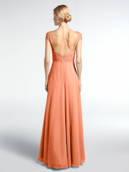 Babaroni RosalindVestido de encaje en el cuerpo y falda de chiffon con mangas cortas Papaya Tallas Grandes