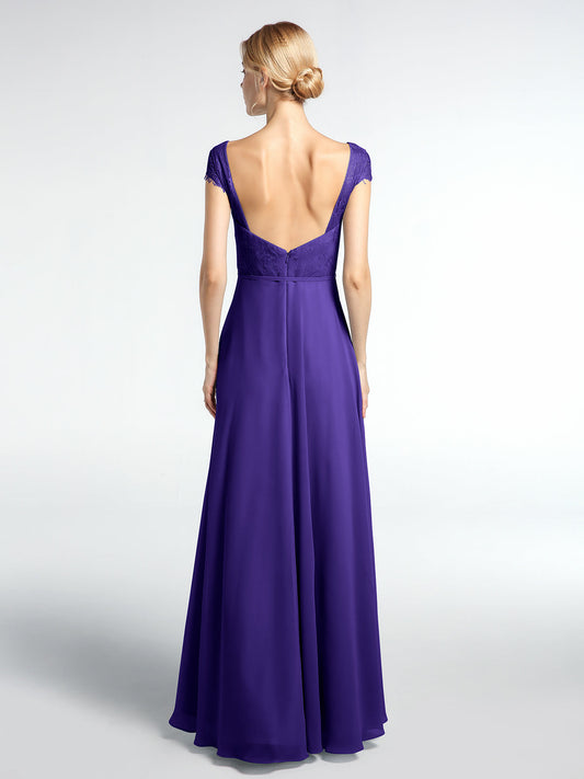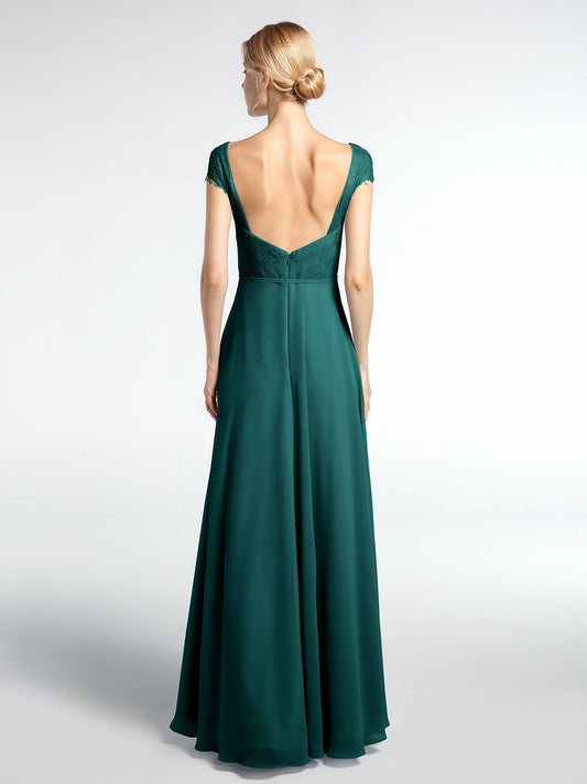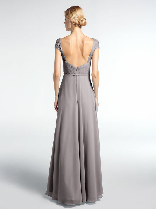 Babaroni RosalindVestido de encaje en el cuerpo y falda de chiffon con mangas cortas Regencia