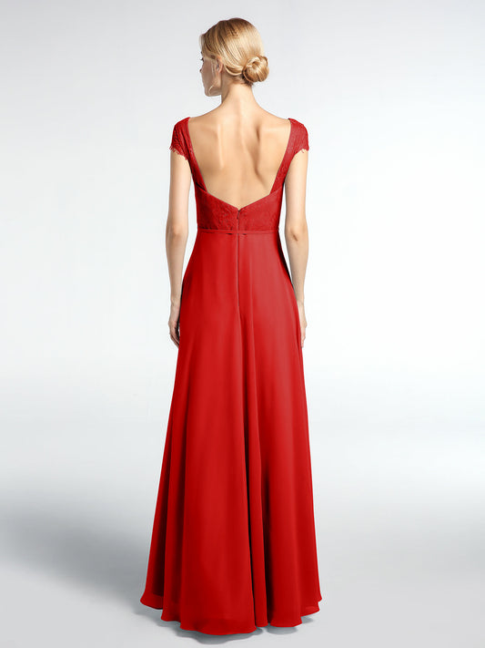 Babaroni RosalindVestido de encaje en el cuerpo y falda de chiffon con mangas cortas Rojo Tallas Grandes